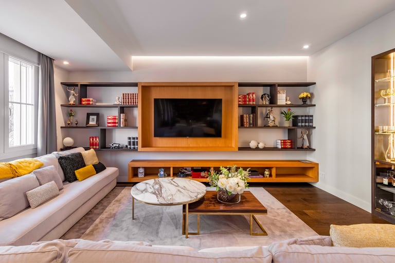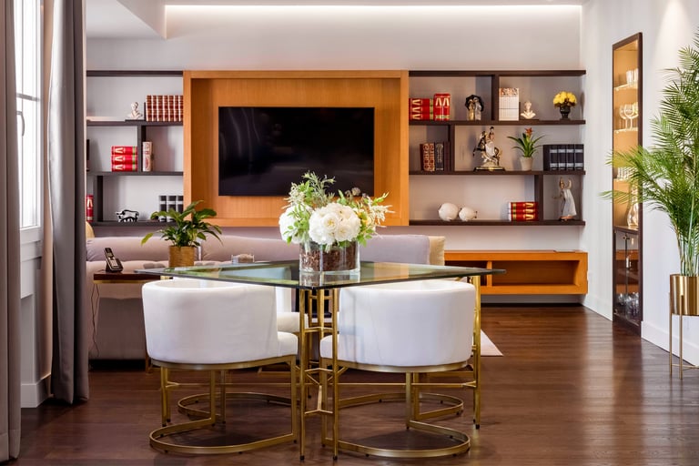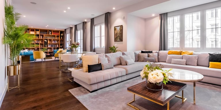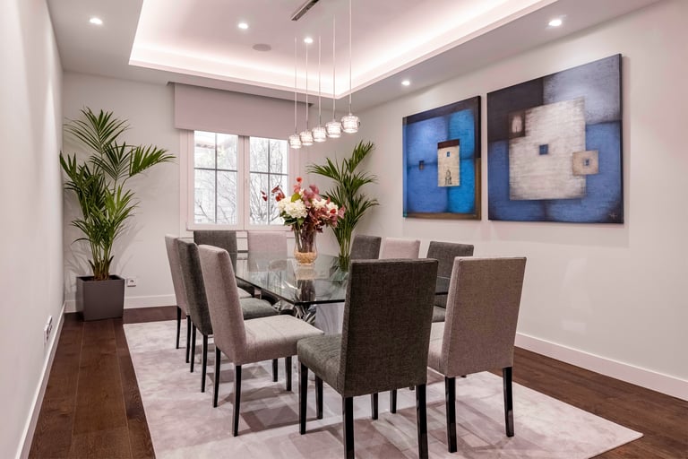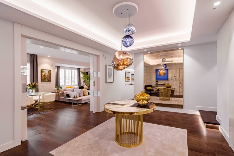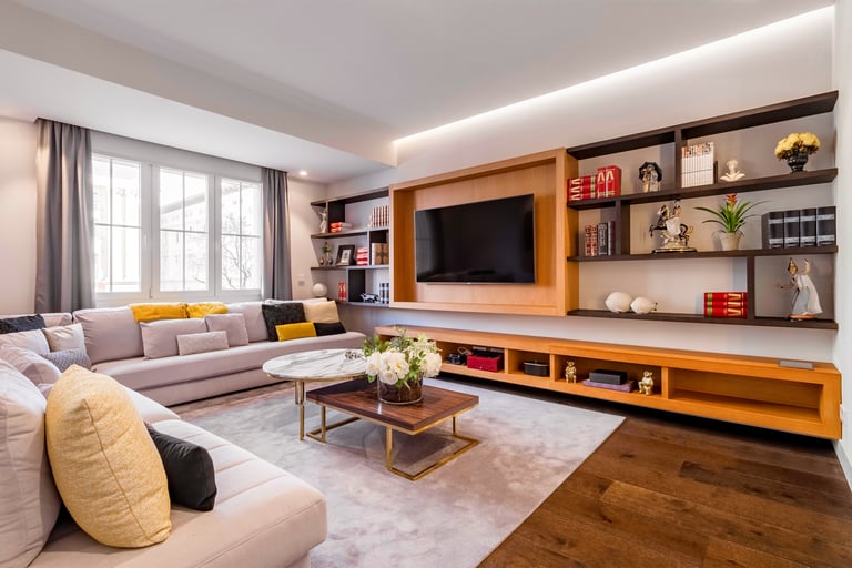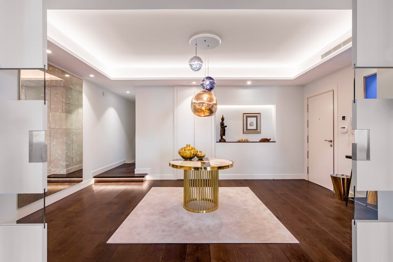En este piso en el distrito de Salamanca nos encargamos del interiorismo de las principales estancias de la vivienda. El reto era conseguir un ambiente agradable y acogedor a la vez que elegante y sofisticado. Elegimos una paleta de colores, texturas y materiales que usamos para dar unidad a los diferentes espacios y diseñamos algunas piezas de mobiliario que hicieran más funcionales las estancias, además de añadirles carácter.