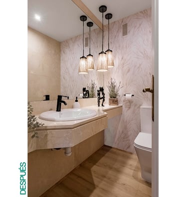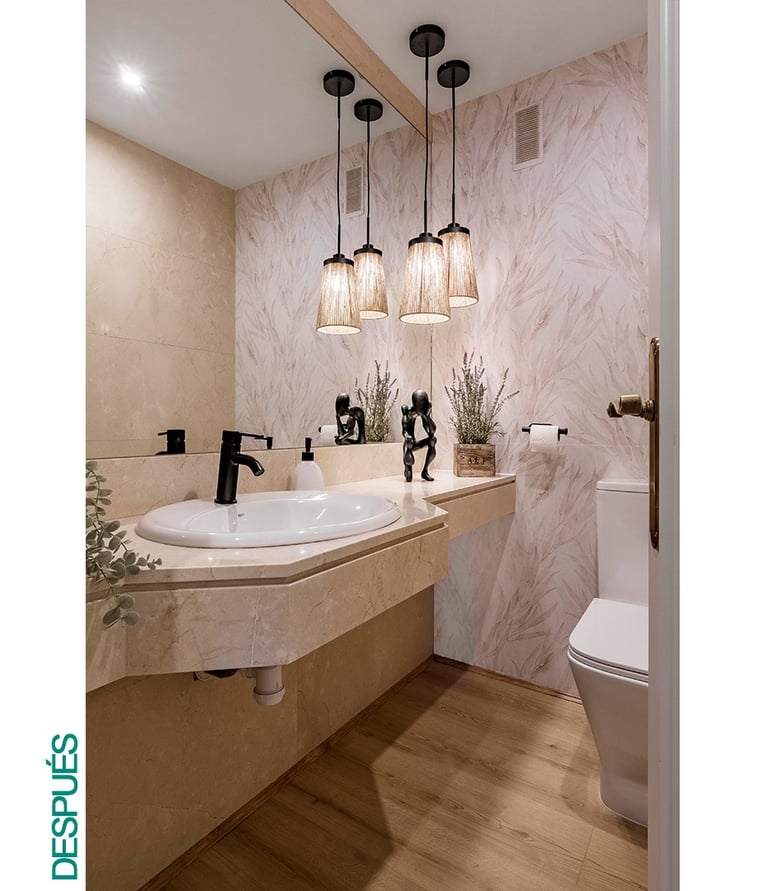Este material es resistente a la humedad y fácil de limpiar, ideal para zonas húmedas. El resultado fue inmediato: un baño más alegre, actual y con un toque decorativo único, sin necesidad de obra.