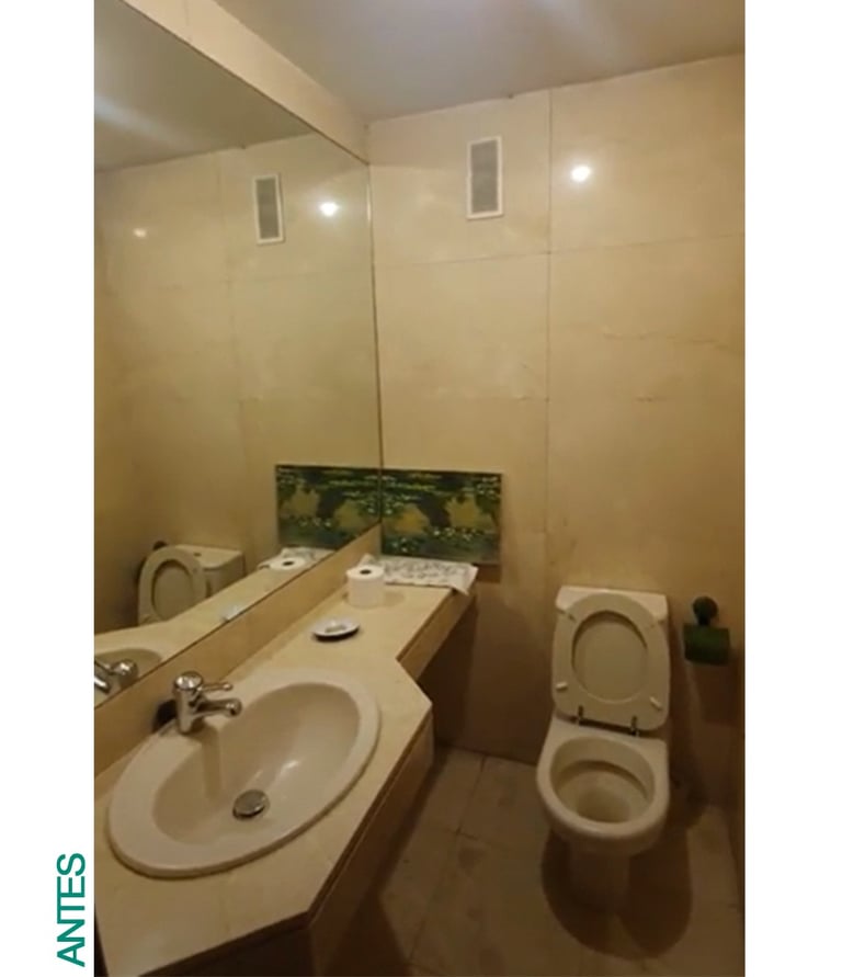 Aunque el espacio estaba bien distribuido, necesitaba urgentemente un cambio. Nuestro objetivo fue claro: modernizar el aseo sin hacer obra, aprovechando al máximo los elementos existentes y aportando diseño, funcionalidad y calidez.